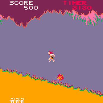 What can I say? Just survive, avoid the falling rocks. You can jump (200pts) or duck (100pts), in some case you could even just run below the boulders (50pts). On higher difficulty you will face more rocks at the same time as some will come down faster and even bouncing differently.